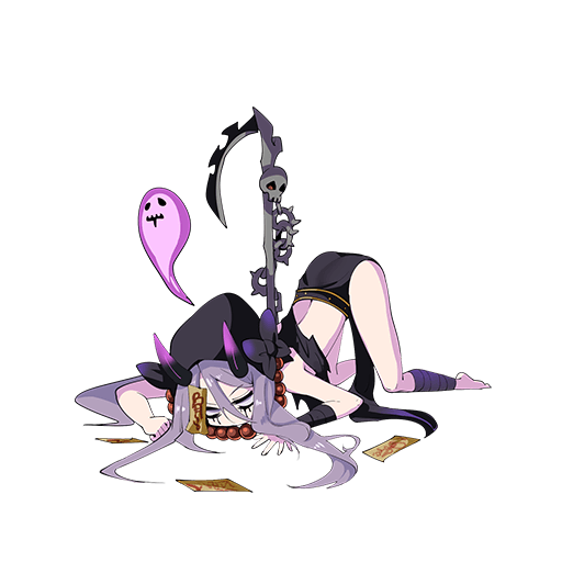 気絶していても、ターン終了時にHP1で復活する、自身が気絶したとき、2ターンの間、敵全体の攻撃力を減らす