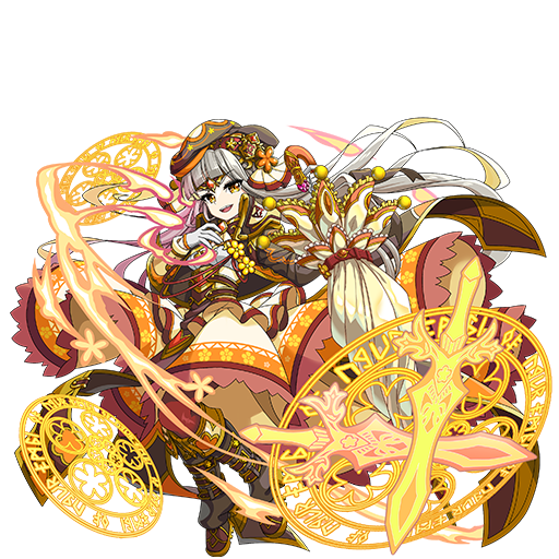 ターン開始時、天候を光にする、天候が光属性なら、光属性の味方全員へのダメージを半減する、武器を2本まで装備可能(自身と同じ属性の武器なら装備条件を無視)、スキル3を揃えた時でも、装備しているチャージ済みの武器スキルが発動する