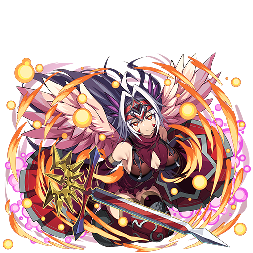 スキル発動時、水ピースを3つ火ピースに変化、ゴッド以外の種族の敵に与えるダメージ100%アップ(アリーナ時効果減少)、敵を倒すたびに自身の攻撃力が大きくアップ(5段階まで上昇)