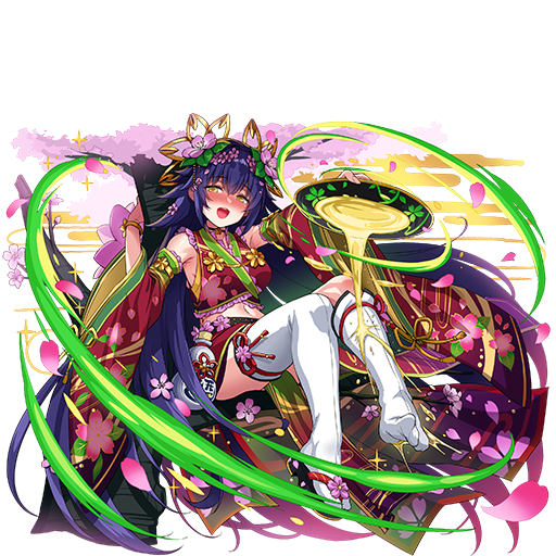 - 敵全体に超強力な木属性攻撃(クエスト時、ダメージ上限2,500億)、さらに木属性の味方全員のHPを大きく回復、このスキルは最大HPを超えて回復する(最大3倍)、消した木ピースと木マルチピースが多いほど威力と回復量がアップ、ピース操作終了後、木以外のピースを全て消し去り、再コンボする