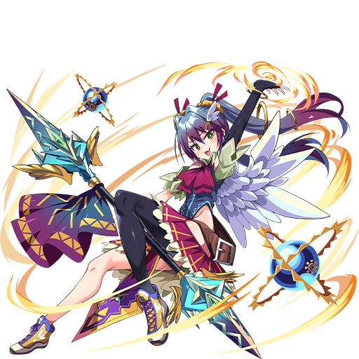 味方全員のHPと攻撃力が200アップ(重複なし)、「精霊剣バトラム」または「天上剣ニコル」装備時、スキル3が変化する、スキル3を揃えた時でも、装備しているチャージ済みの武器スキルが発動する