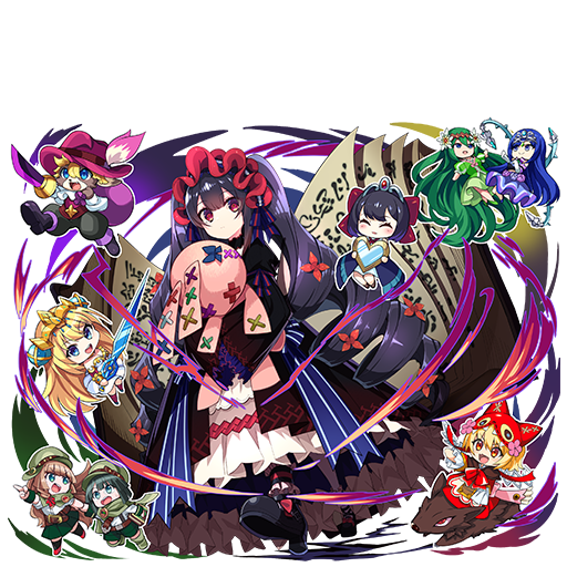 「童話・物語」シリーズのスキル形状属性を闇属性に変更する、バトル開始時、「童話・物語」シリーズの味方全員に(自身が受けるダメージを60%軽減する)効果を付与する