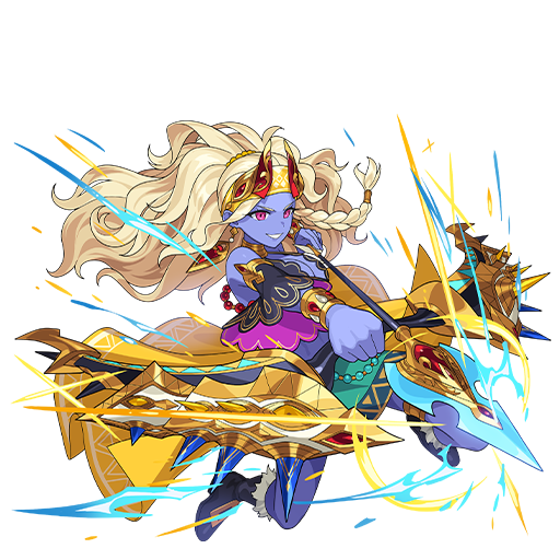 ターン開始時、天候を雪にする、天候が雪なら、光属性の味方全体の攻撃を大きく強化、さらに光属性の味方全員へのダメージを半減させる