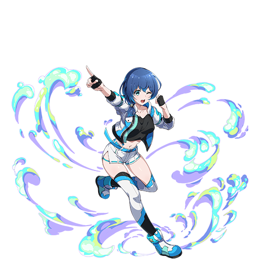 ピース操作開始時、盤面の毒・麻痺・混乱・旋風・凍結ピースを合計3個まで治す、スキル使用時に水属性ピースを7個以上消していると、スキル2も同時に発動する